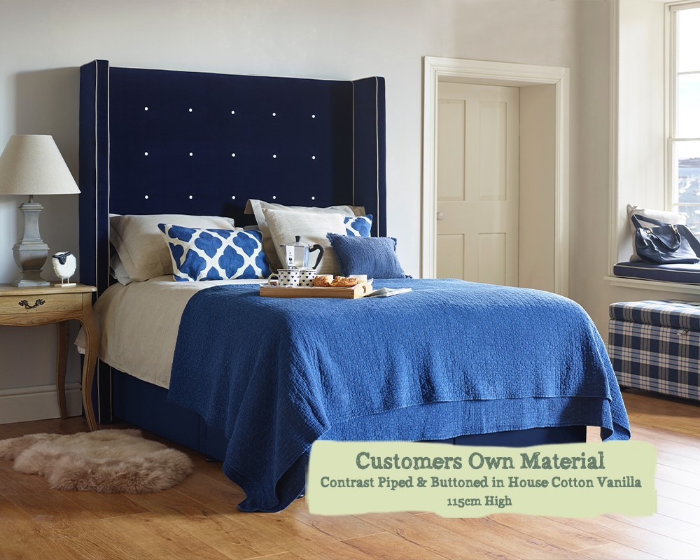 Small Double Headboard Winged Mull Customers Own Material Contrast Piped Contrast Buttoned House Cotton Vanilla