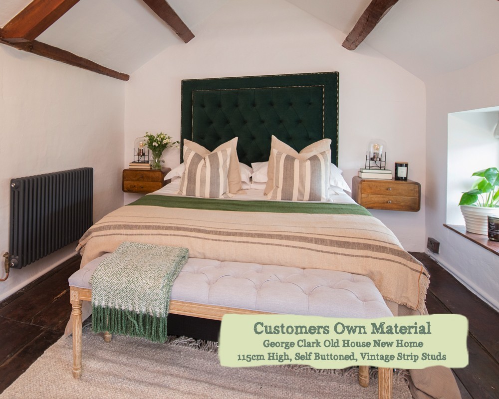 Small Double Headboard Easdale George Clark Old House New Home 115cm High Self Buttoned Vintage Strip Studs