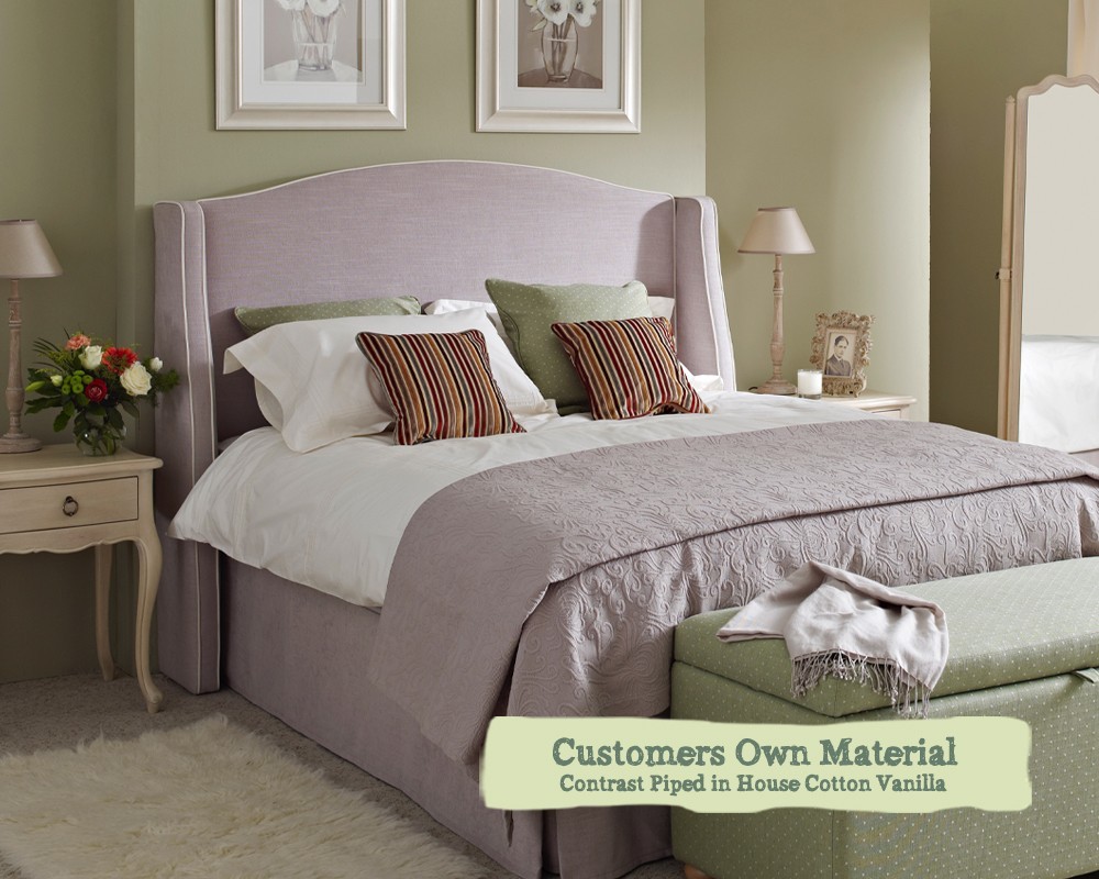 Small Double Headboard Winged Caldey Customers Own Material Contrast Piped House Cotton Vanilla