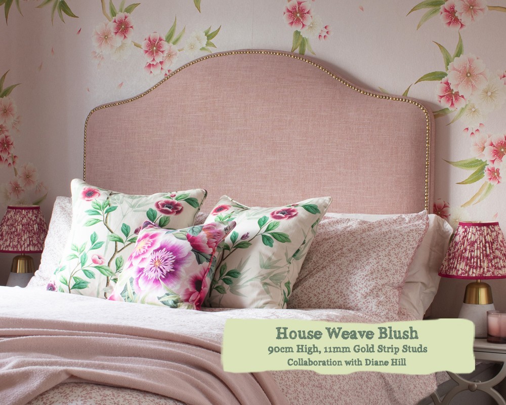 Small Double Headboard Barra House Weave Blush 90cm Height 11mm Gold Strip Studs