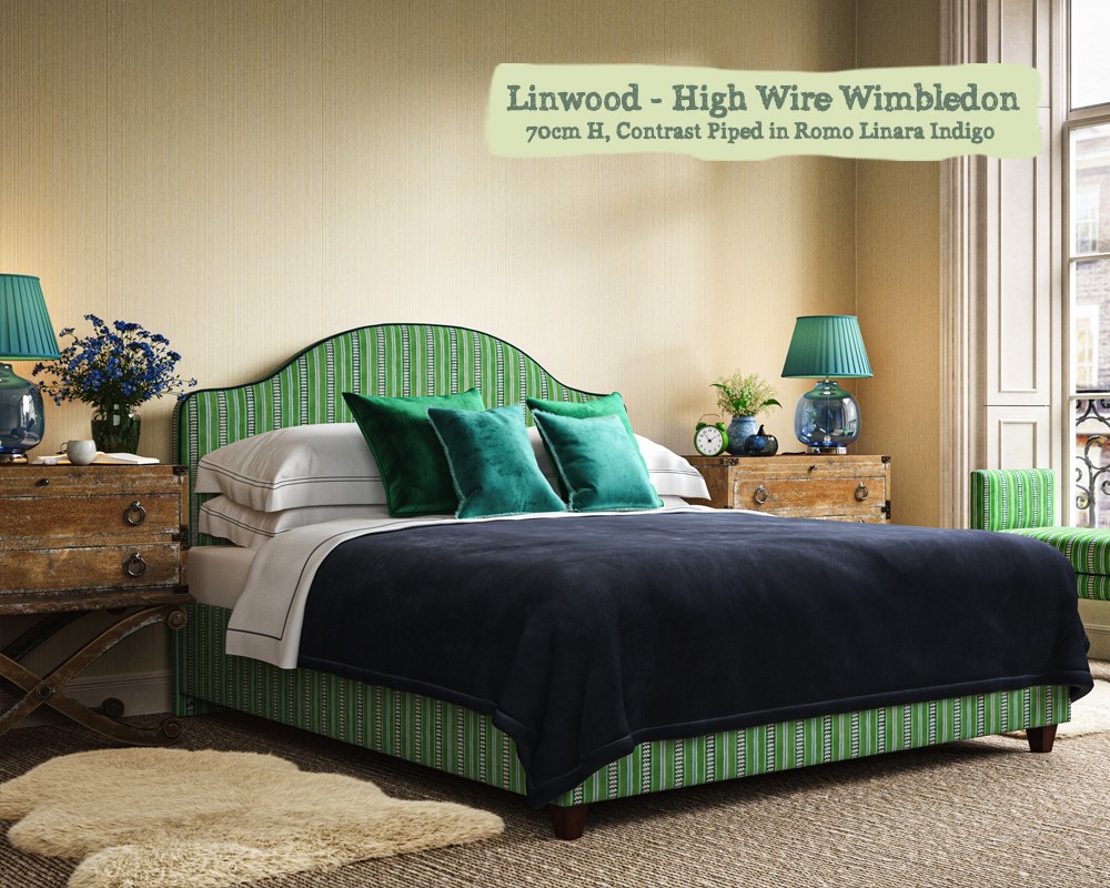 Barra Headboard in Linwood High Wire Wimbledon, 70cm High, Contrast Piped in Romo Linara Indigo