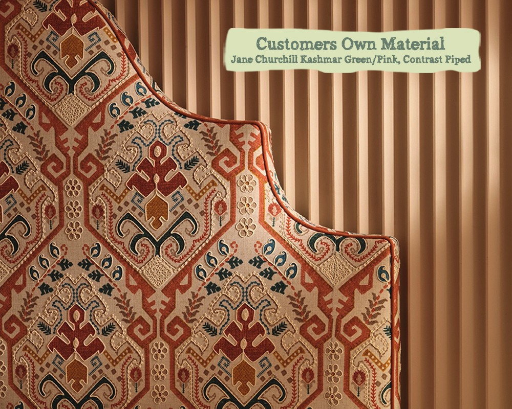 Samson Headboard in Jane Churchill Kashmar Red, Contrast Piped Edge Finish in COM Otis Terracotta