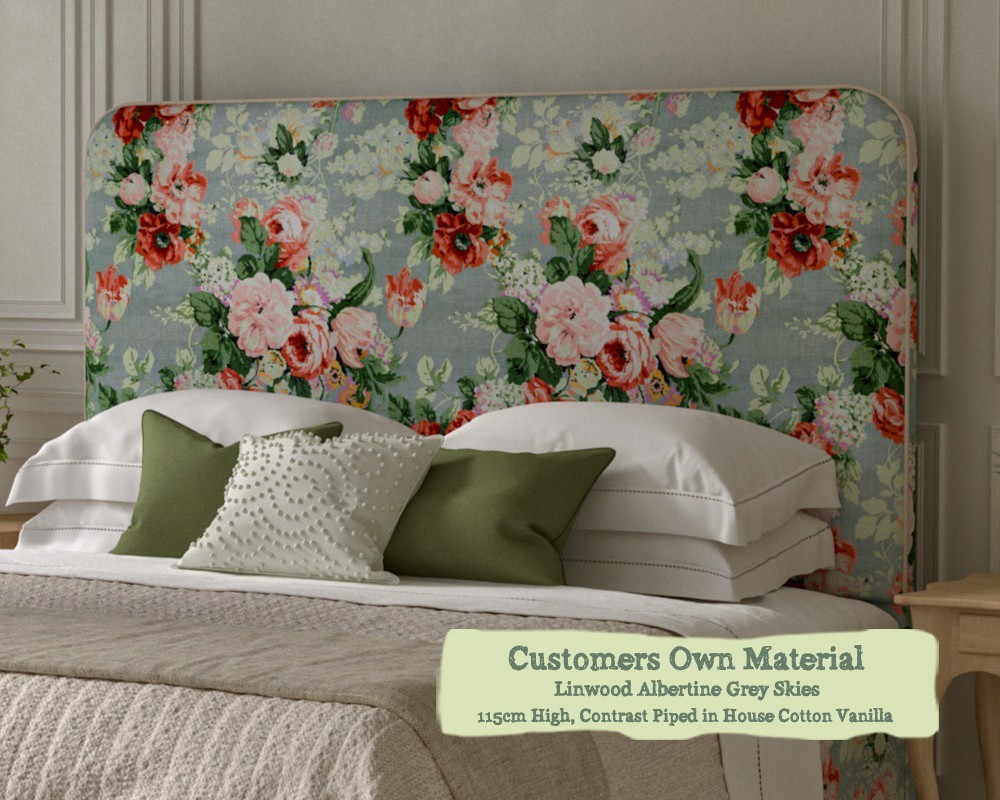 Small Double Headboard Faray Linwood Albertine Grey Skies 115cm Height Contrast Piped House Cotton Vanilla