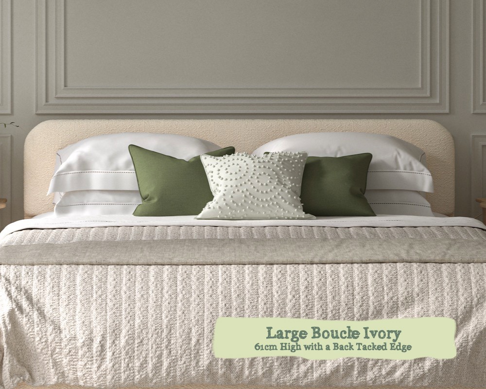 Small Double Headboard Faray Large Boucle Ivory 61cm Height Back Tacked Edge