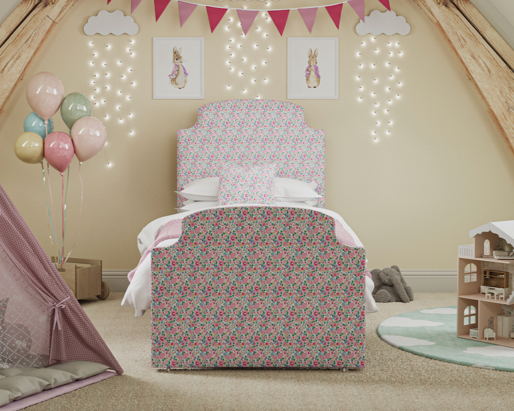 Your new Puffin Flexi-Bed is the ultimate in functionality, making this a beautiful and fully customisable piece of furniture. The dual head and foot ends feature our popular Puffin shape and is piped on both sides. Choose an underbed configuration that suits your needs – whether you prefer nothing underneath to store your suitcases or storage baskets, a large and study full length storage drawer, or, a drawer with mattress inside for guests! Finish the front with an optional valance to hide clutter or enjoy the upholstered drawer front.