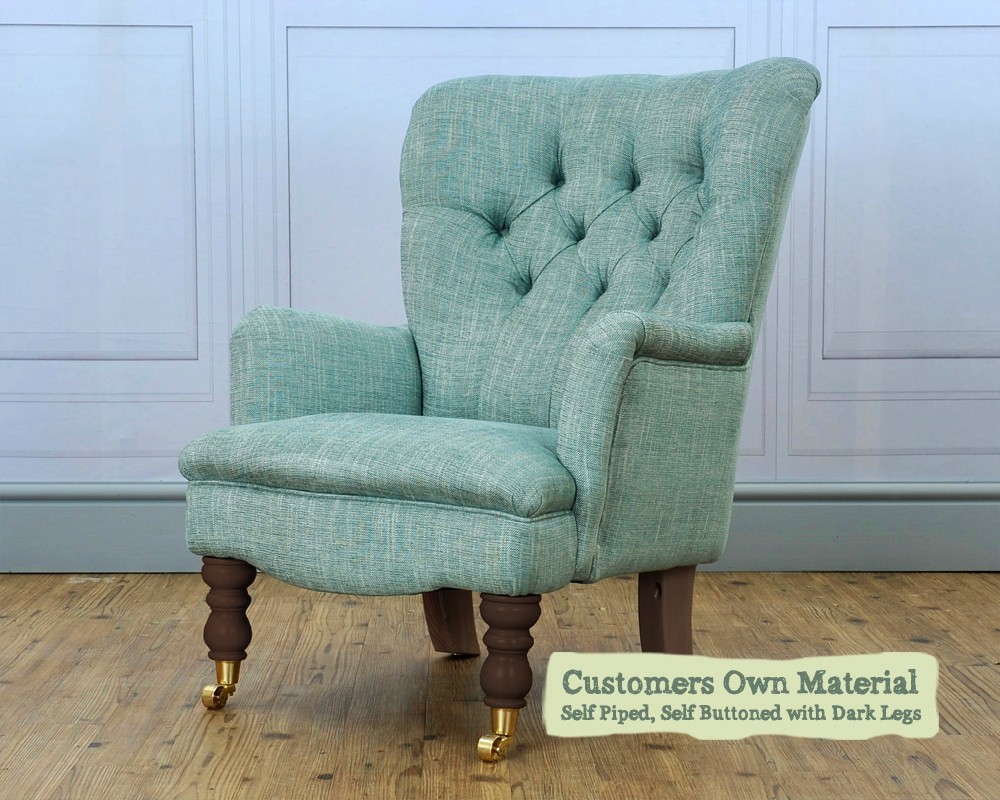 Nairn Chair Customers Own Material Self Piped Self Buttoned Dark Legs