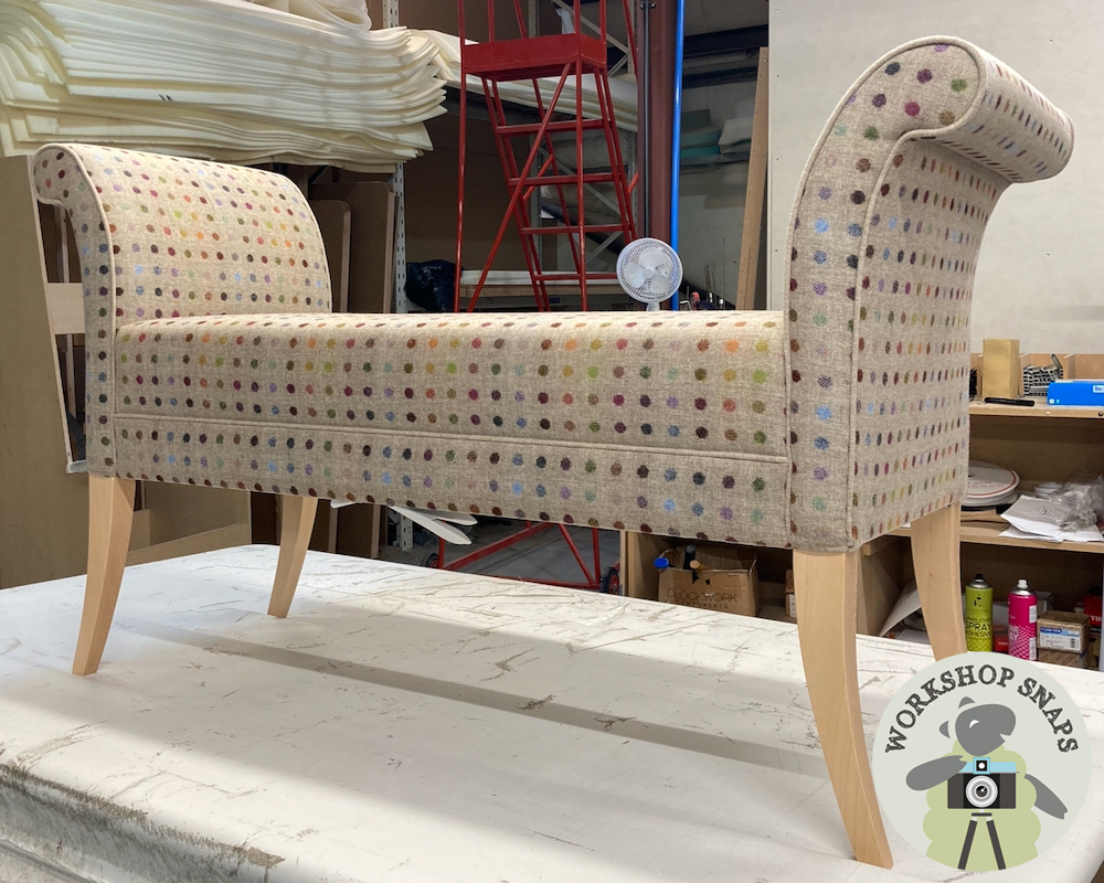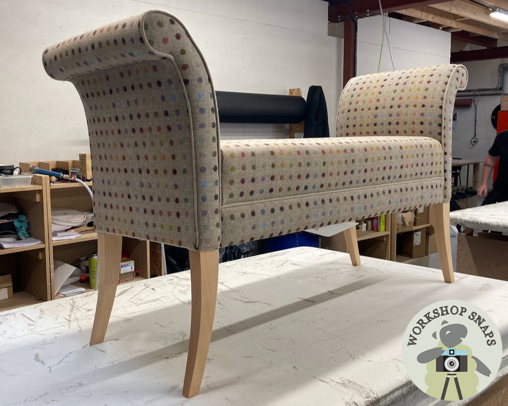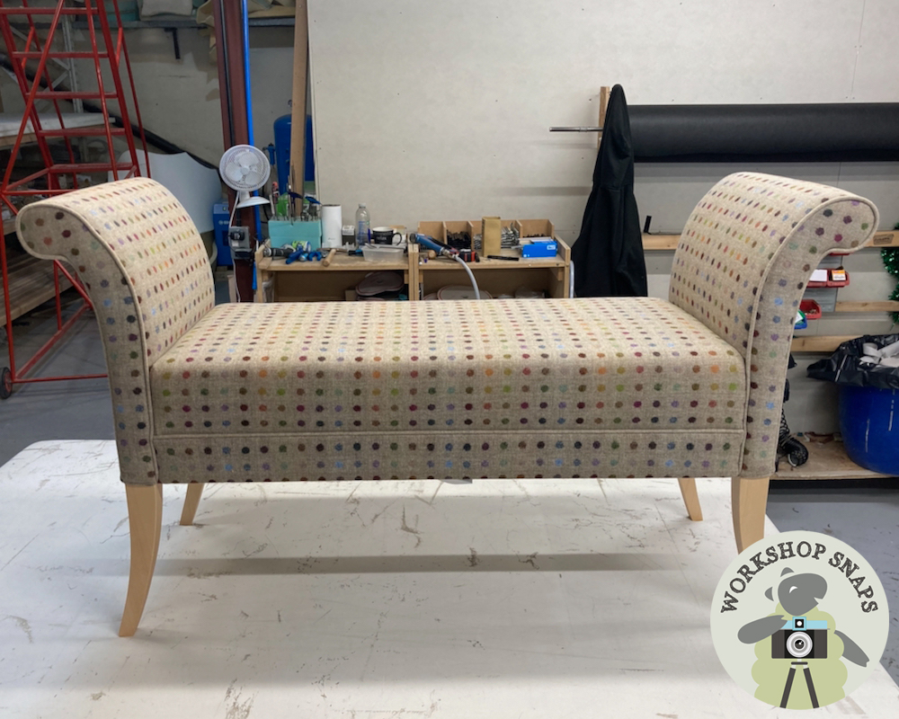 Broxbourne Footstool - Moon Wool Multispot Natural - 137cm x 48cm - Contrast Piped in Moon Wool Melton Oatmeal - Light Leg - 10520