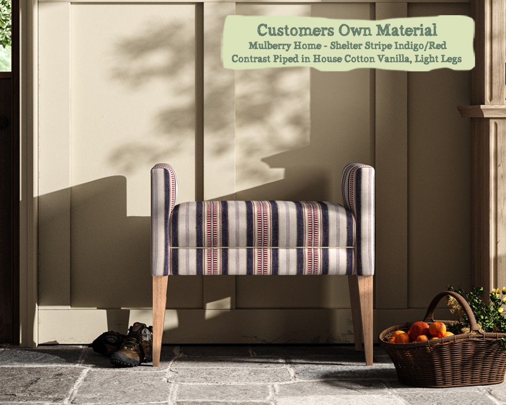 The Brampton Plain Top Straight Arm Bench Stool 74 x 39cm (29 x 15") is handmade to order and fully customisable.