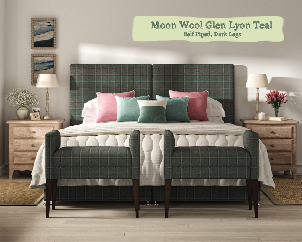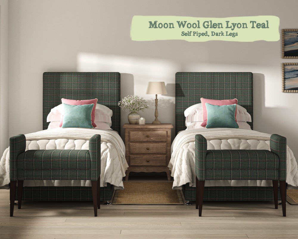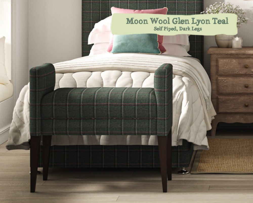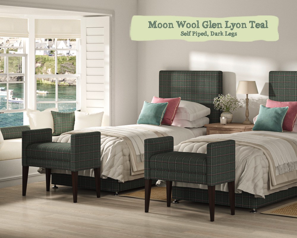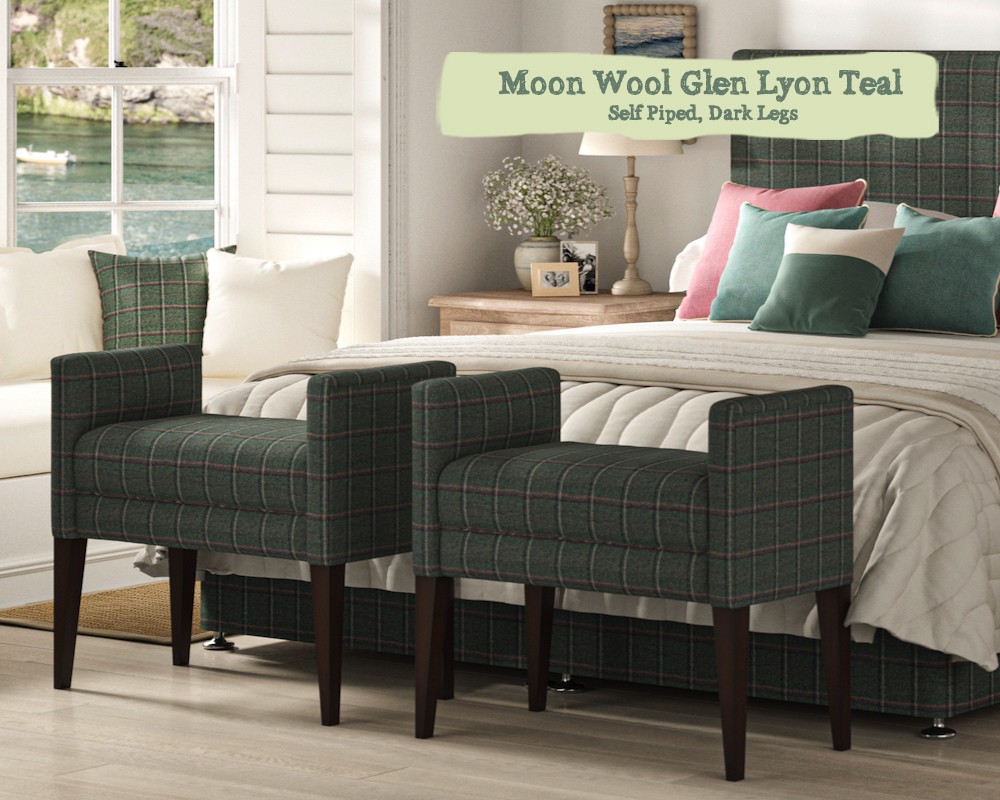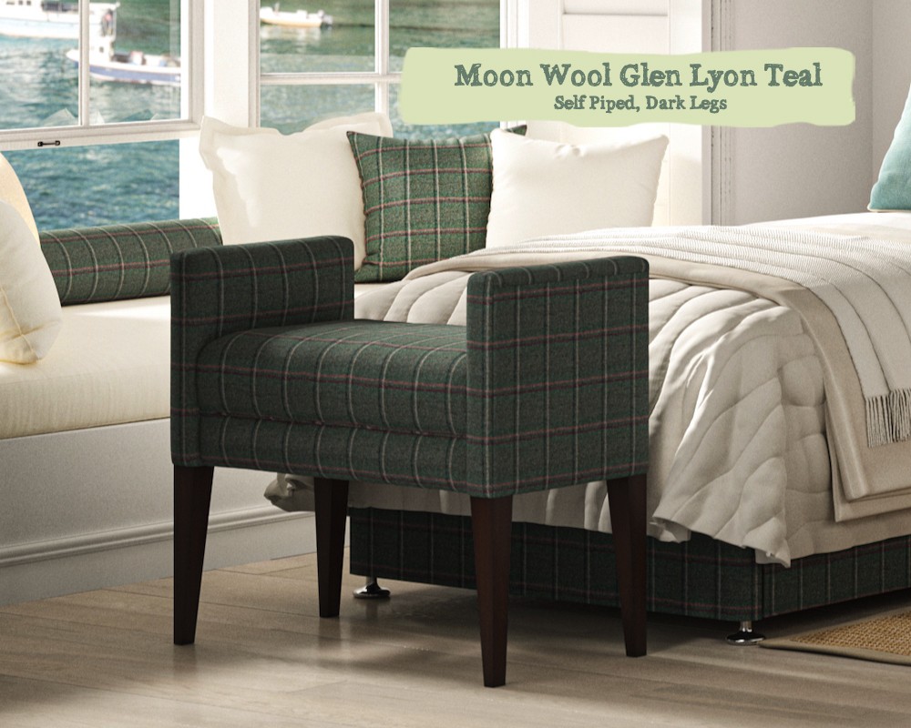 Shown in Moon Wool Glen Lyon Teal, with Self Piping and Dark Legs