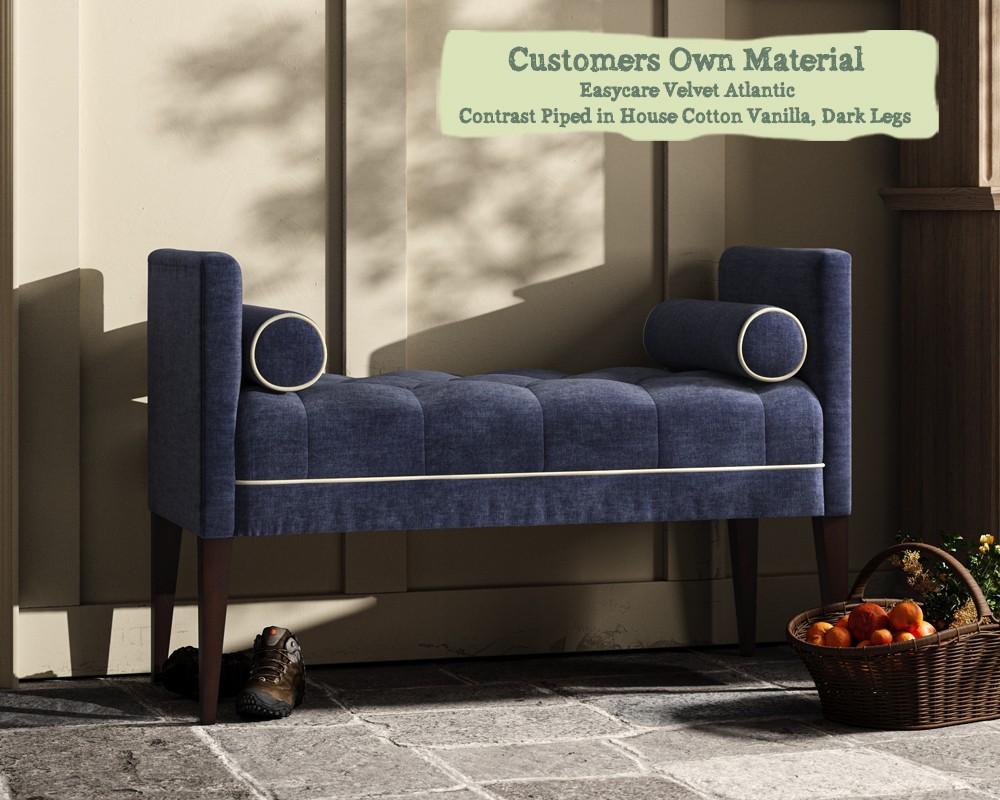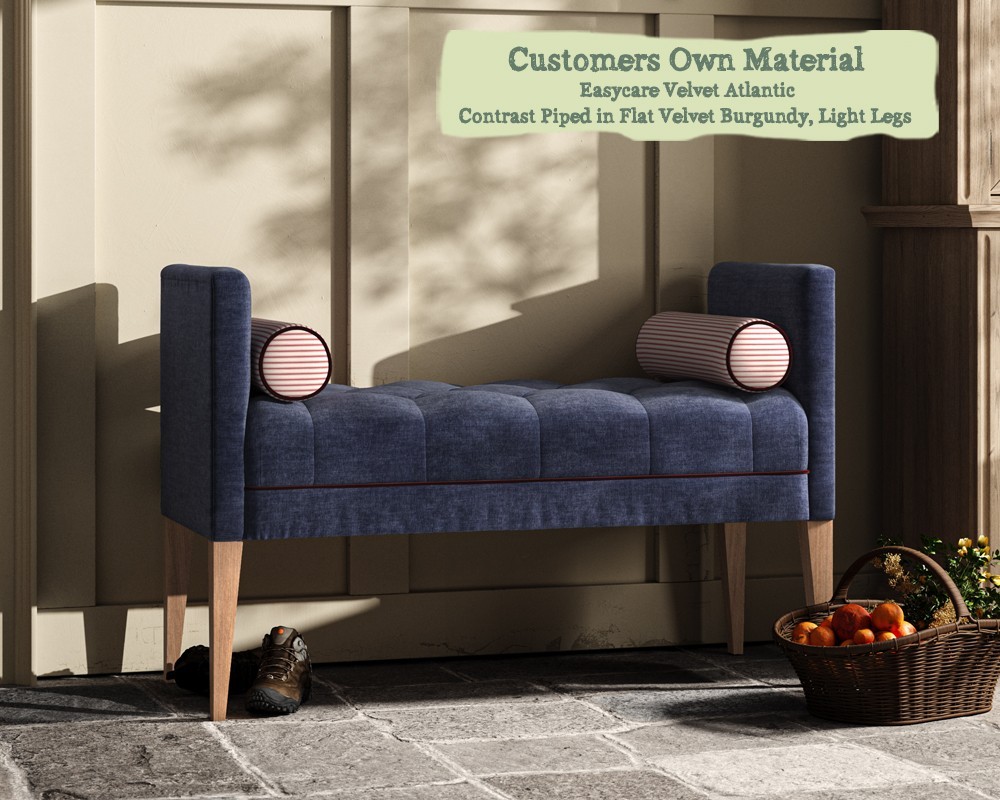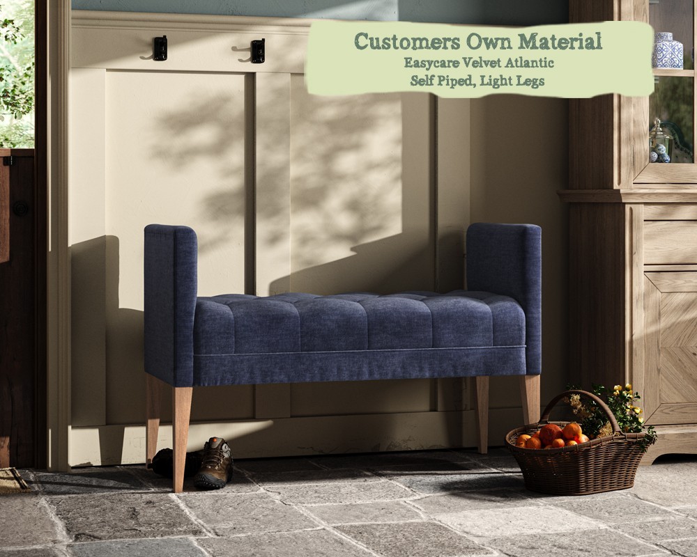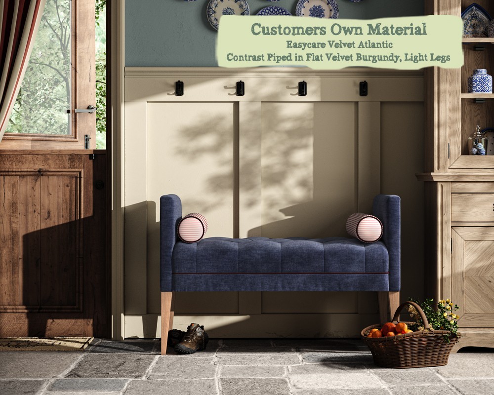 The Burbage Deep Buttoned Top Straight Arm Bench Stool with Border 115 x 48cm (45 x 19") is handmade to order and fully customisable.