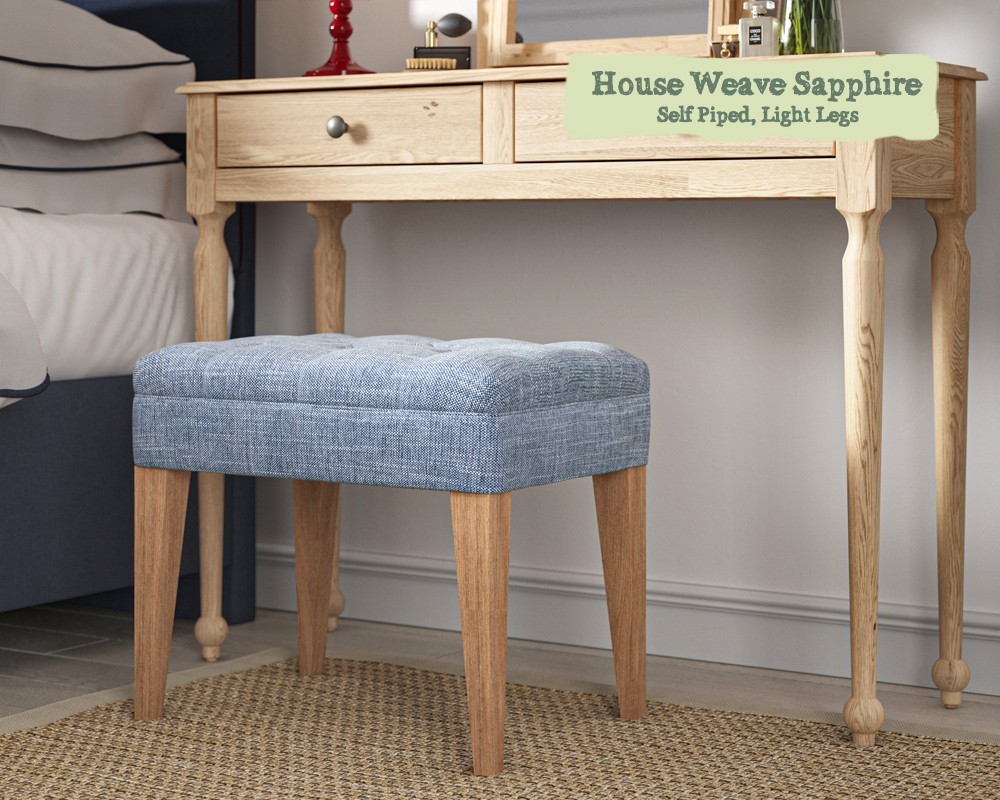 The Brading Dressing Table Stool is ideal for bedrooms, dressing rooms and powder rooms. Its comfortably deep buttoned seat pad is complimented by tapered legs.