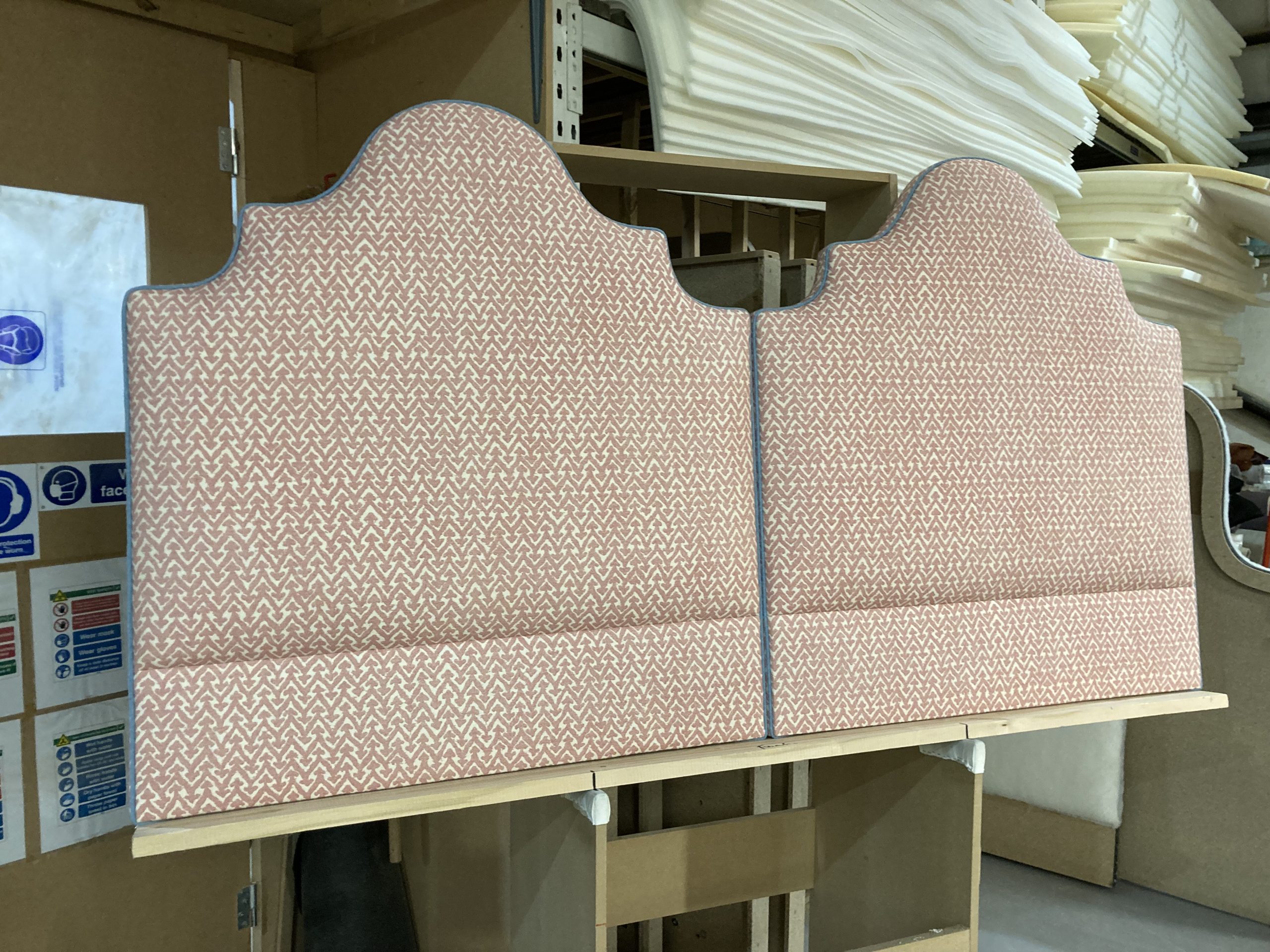 The most crucial of which is making it comply with commercial fire regulations. As a fixed upholstery item, a headboard or bed must adhere to strict legislation. Any material you send us must comply to Crib 5. This can be achieved in number of ways: