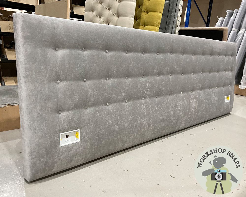 Bespoke Shallow Buttoned floor standing oversized headboard with socket mounts.