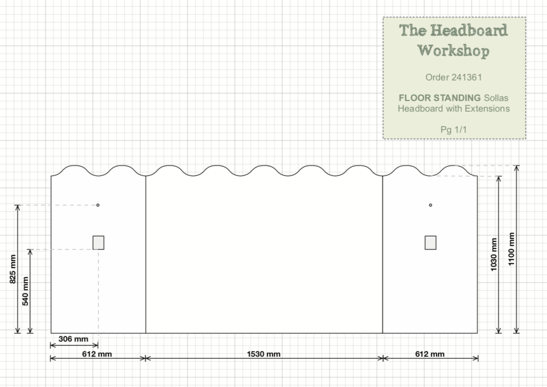 Example 2D dimensions schematic from The Headboard Workshop’s bespoke team