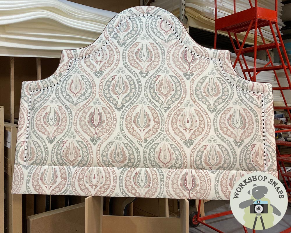 We are very proud to show off our latest creation – The Kerrera features the very popular keystone shape, with an added inset nailed braid feature. Shown above in our gorgeous House Cotton Peppermint fabric.