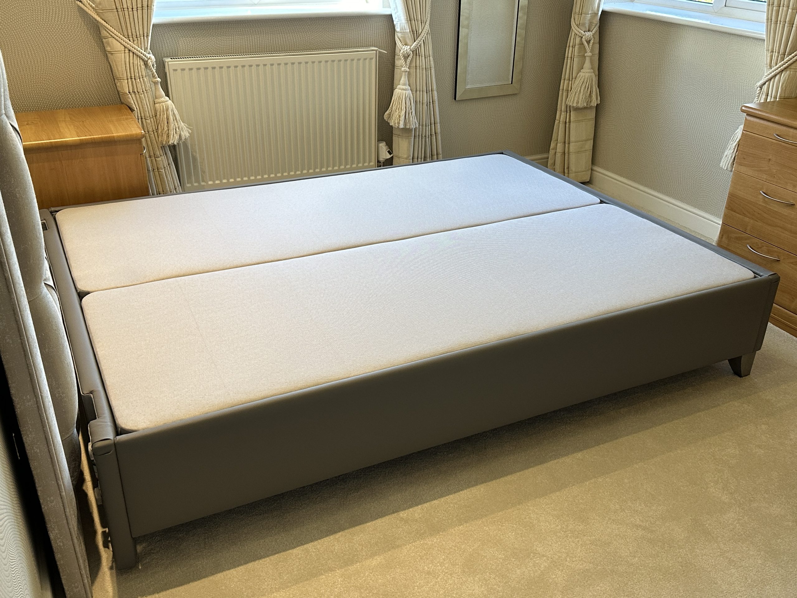 This ‘As New’ Kingsize Guernsey Bed Base is presented on our website as part of our Eco-Exchange programme which puts customers in touch with sellers of new and nearly new Headboard Workshop items.
