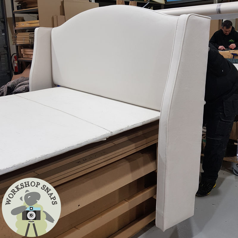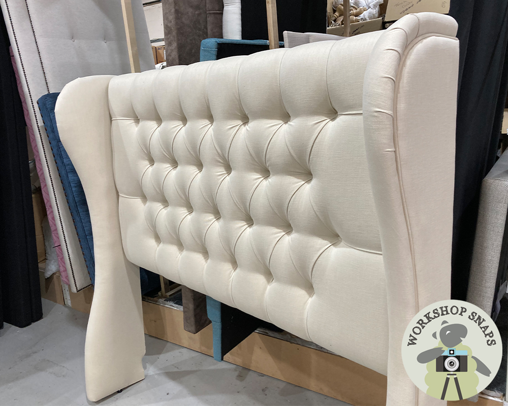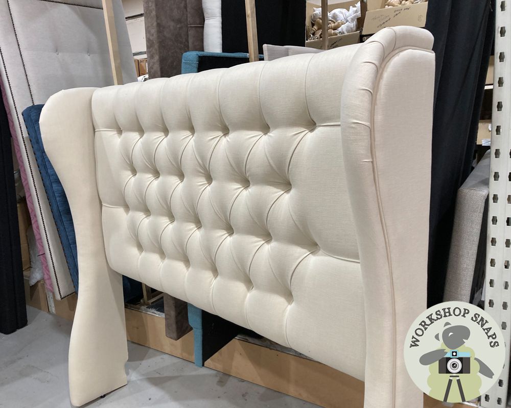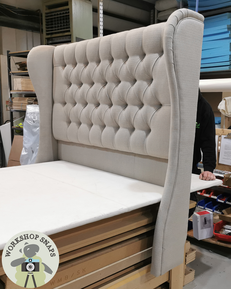 Scroll through the images below to discover what winged & cosy headboards are currently being upholstered in the factory – all handmade to order for our customers.