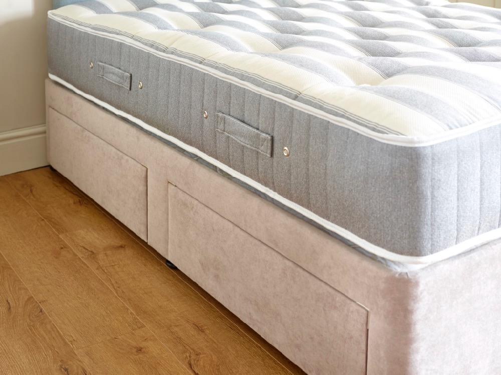 All our upholstered beds are made to order, and so if you would like a bed that is smaller overall in width and length we can raise the mattress platform to sit flush with the top of the surround. If you require an upholstered bed with a 'flush top' rather than an inset mattress please contact us on 01291 628216.