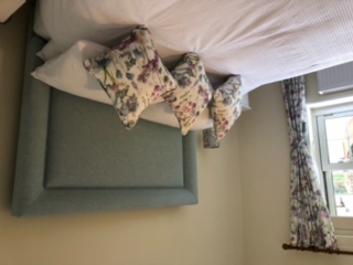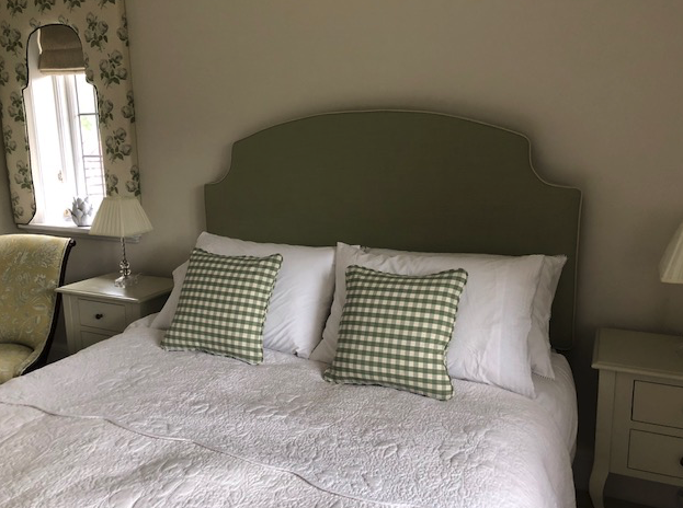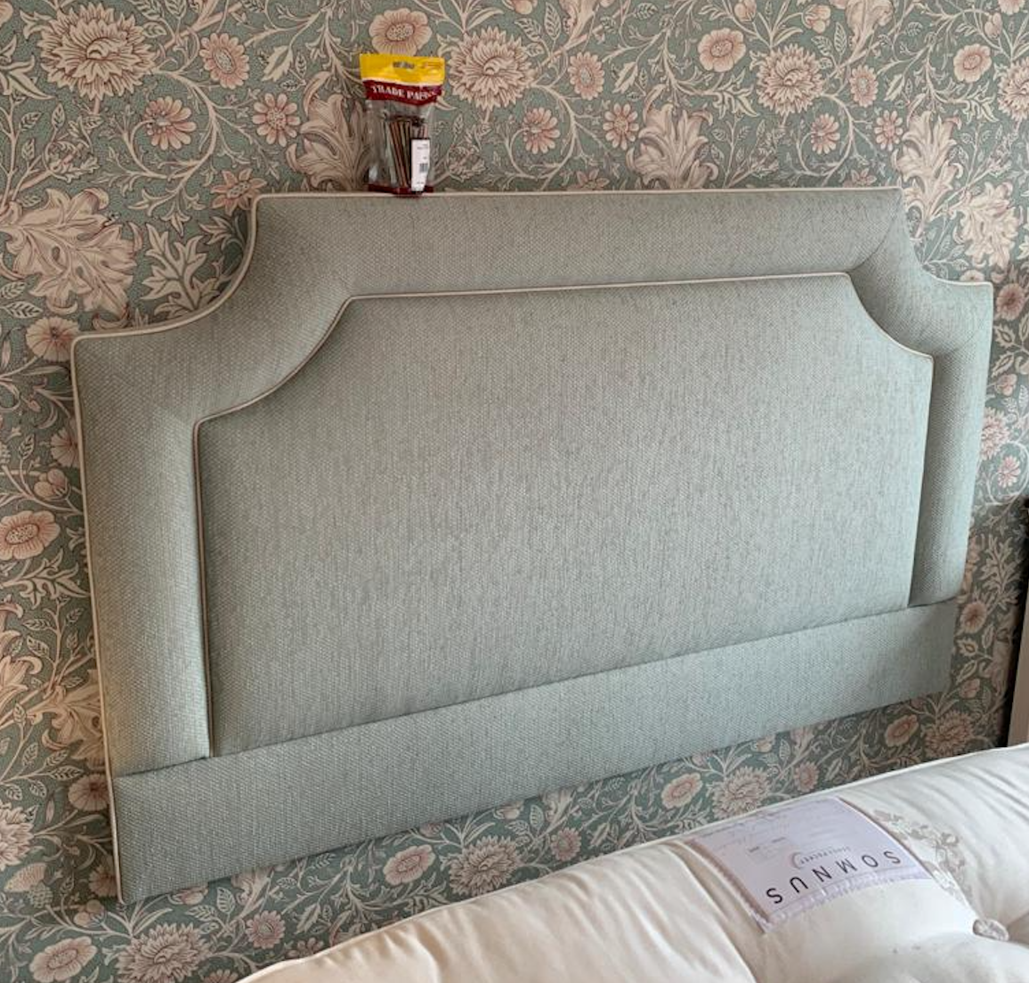 I was very happy with the headboard that you have just made me. The fabric had to be pieced but this was expertly done and the addition of a trim along the top edge has worked very well.