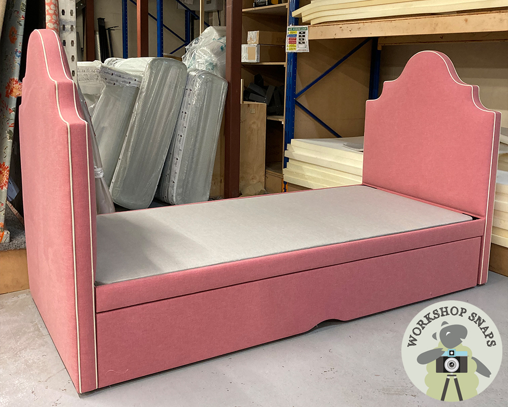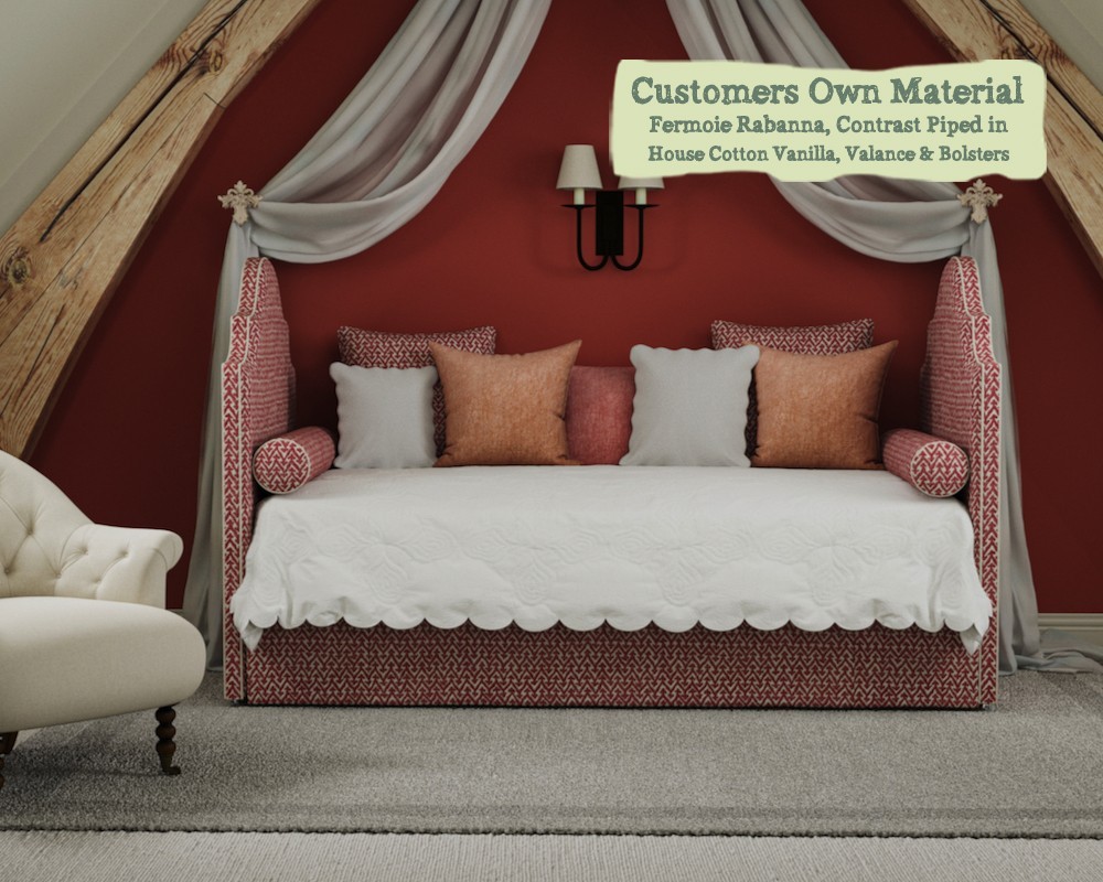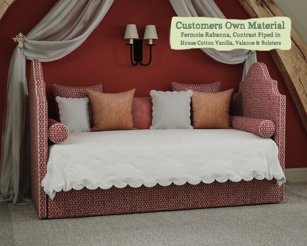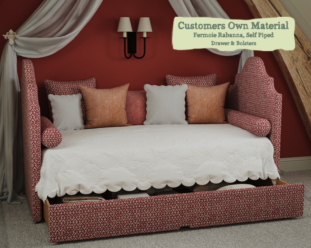 Samson Daybed - Customers Own Material - Fermoie Rabanna - Contrast Piped in HC Vanilla - With Drawer - With Valance - With Bolsters and Contrast Piped in HC Vanilla - 242219