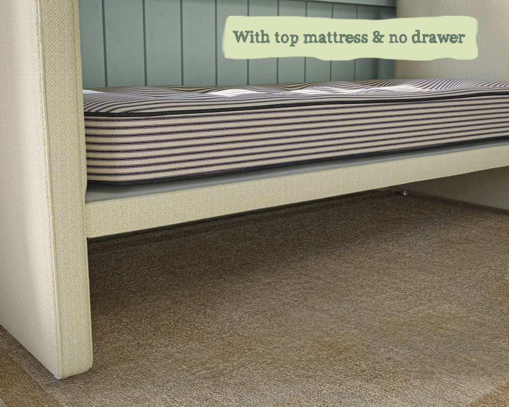 The complimenting slimline top mattress (with black edge piping) at 7ins (18cm) high, sits perfectly inside our Daybed.