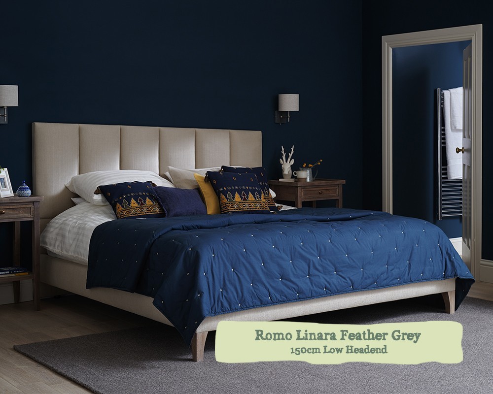 Double Grand Bed Taransay Romo Linara Feather Grey 150cm Low Headend 6ins Legs