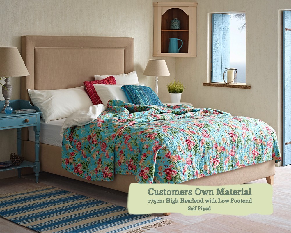 Double Bed Ghia Customers Own Material High Headend Low Footend Self Piped
