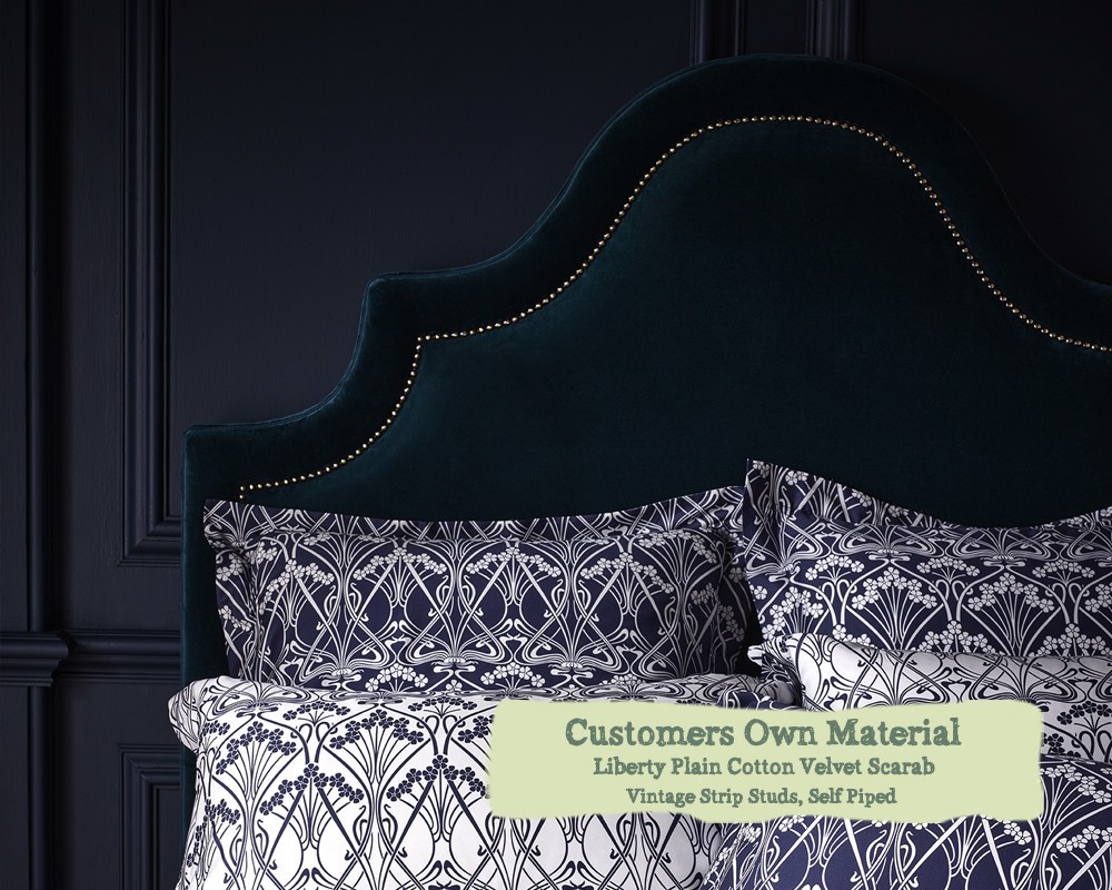 Double Bed Kerrera Liberty Plain Cotton Velvet Scarab Vintage Strip Studs Self Piped