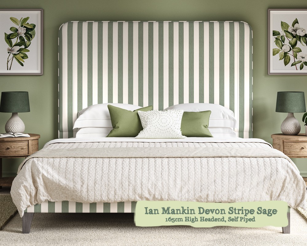 Double Faray Grand Bed Ian Mankin Devon Stripe Sage 165cm Self Piped 6ins Leg