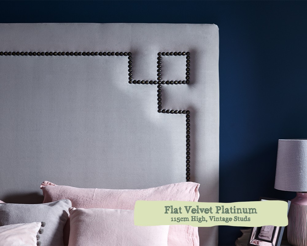 The Eriskay is expertly upholstered and hand nailed in a choice of 4 stud colourways in a ‘greek key’ arrangement at the corners. Available in 3 heights; 24ins (61cm), 30ins (77cm) or 45ins (115cm). This bedhead makes a very fashionable statement.