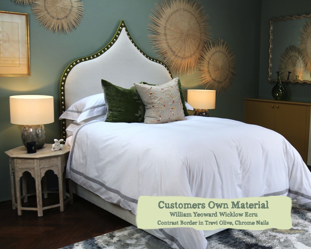 Double Headboard Ewe WIlliam Yeoward Wicklow Ecru Contrast Border Trevi Olive Chrome Nails