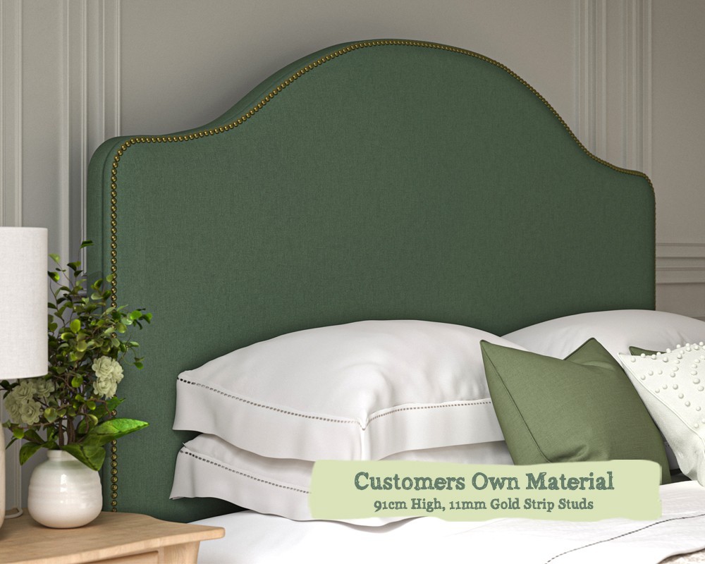 Double Headboard Barra Customers Own Material 91cm Height 11mm Gold Strip Studs