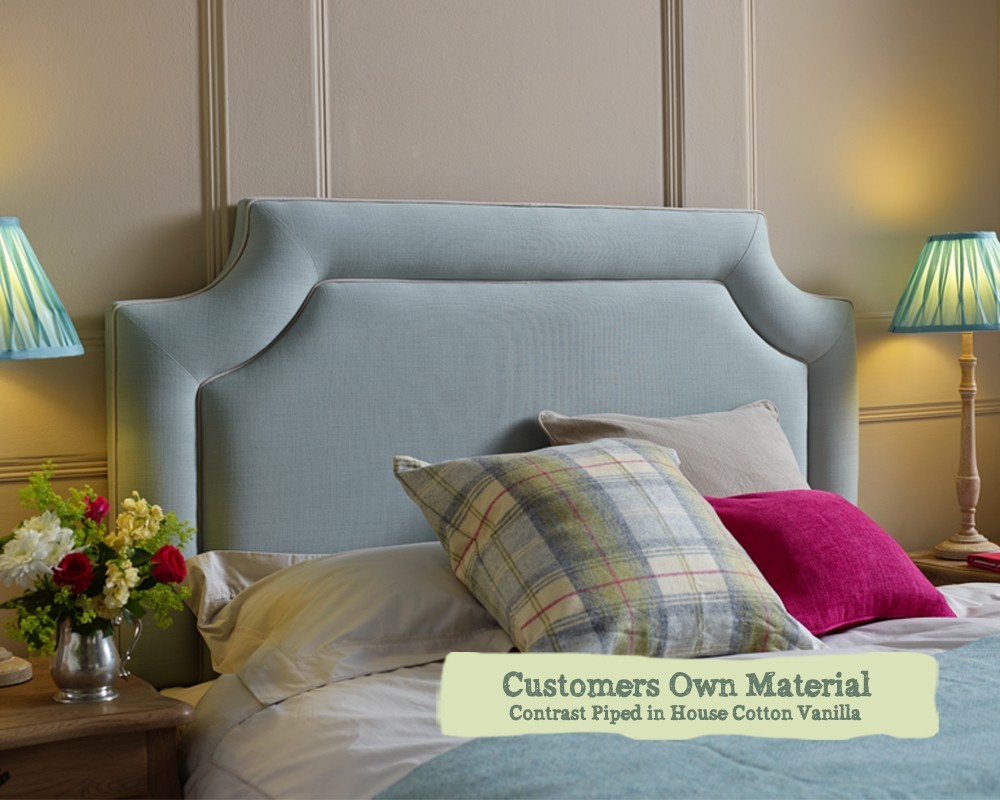 Double Annet Headboard - Cristina Marrone Como Porpoise - Contrast Piped in HC Vanilla - With Pillowstop - 246363