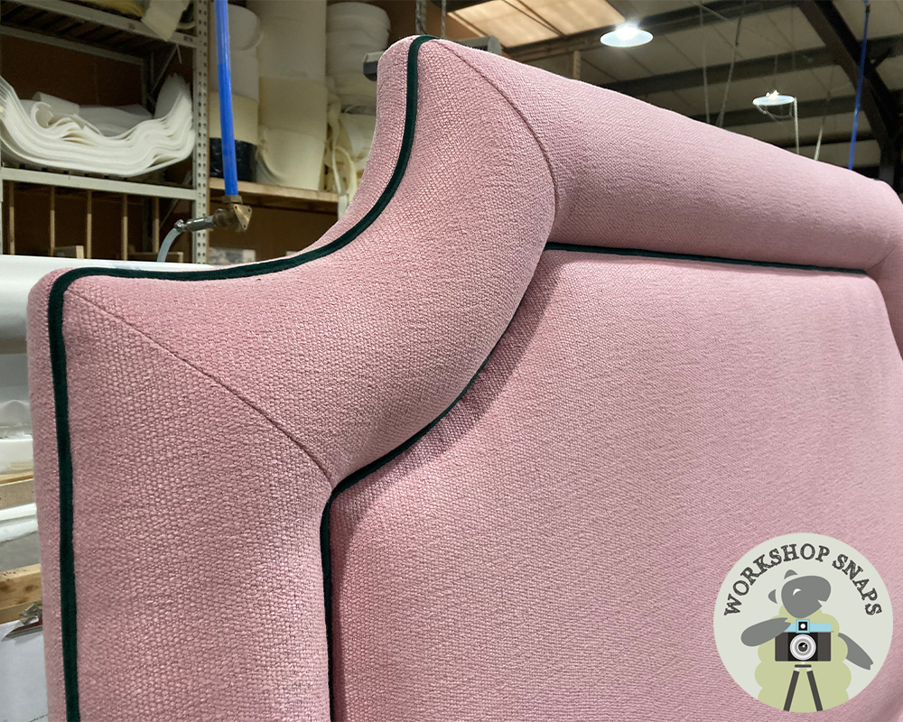 Bespoke Double Annet Headboard - Soft Weave Rose Pink - Double Contrast Piped in Flat Velvet Highland Green - With Pillowstop - 224668 (2)
