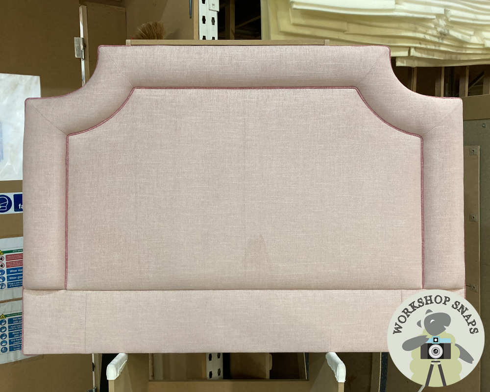 Double Annet Headboard - House Weave Blush - Contrast Piped in HW Rose Pink - With Pillowstop - 235770