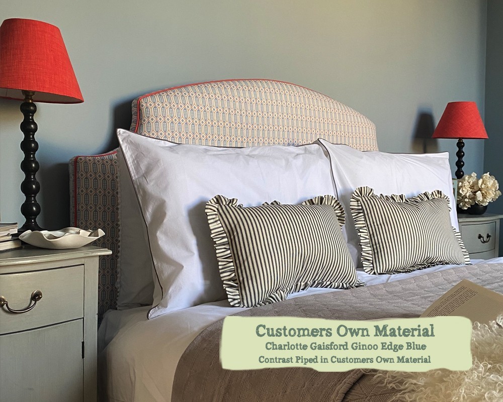 We are absolutely delighted with our headboard! The fabric is exactly right in our room and looks beautiful with the piping. The delivery process was seamless and my husband was able to install the headboard without any difficulties.
