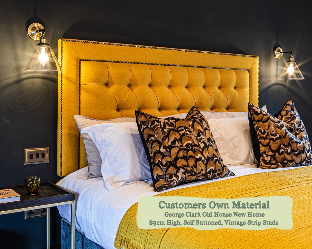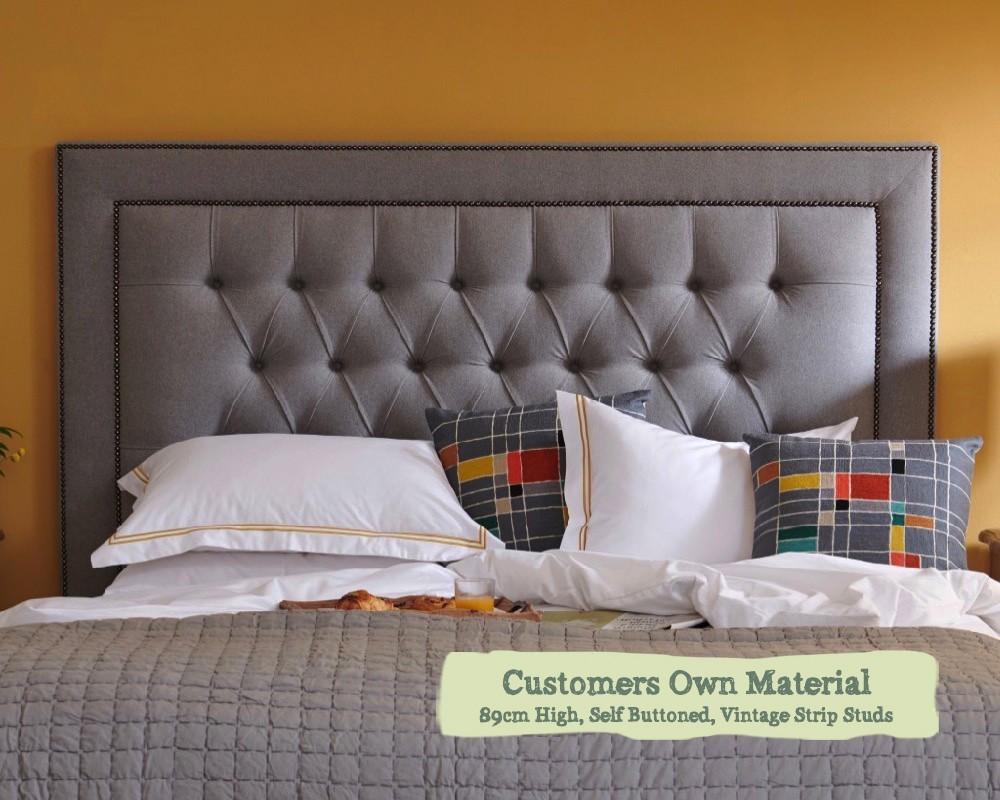 Emperor Headboard Easdale Customers Own Material 89cm High Self Buttoned Vintage Strip Studs