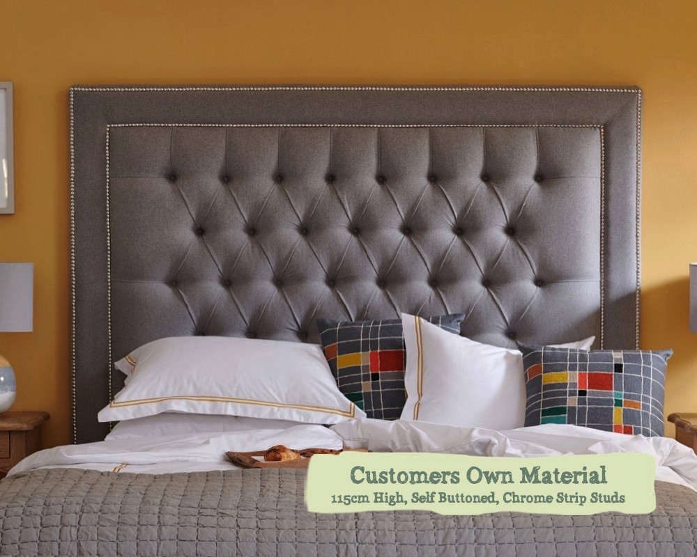 Emperor Headboard Easdale Customers Own Material 115cm High Self Buttoned Chrome Strip Studs