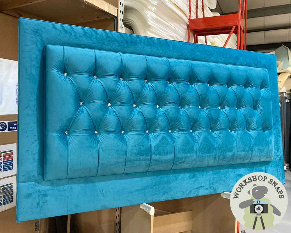 6ft 6ins Emperor Easdale Headboard - Cristina Marrone Cambio Cerulean - 35insH - Self Piped - Swarovski Crystals - WIth Pillowstop - 237553