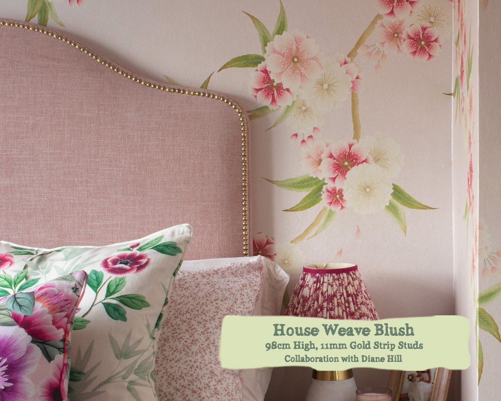 Emperor Headboard Barra House Weave Blush 99cm Height 11mm Gold Strip Studs