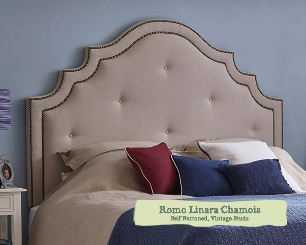 Emperor Bardsey Headboard in Romo Linara Chamois, Self Buttoned with Vintage Stud Border