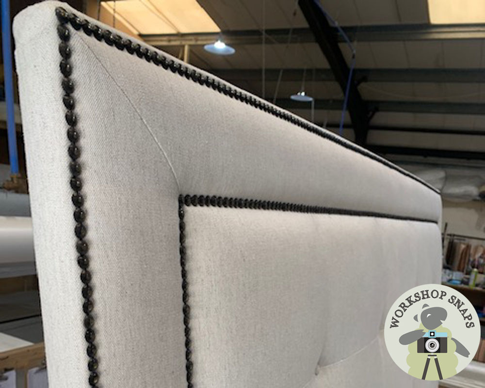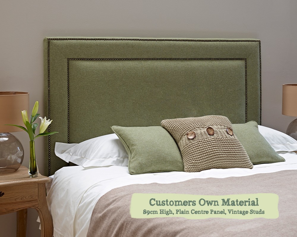 Emperor Headboard Jura Customers Own Material 89cm High Plain Centre Vintage Studs