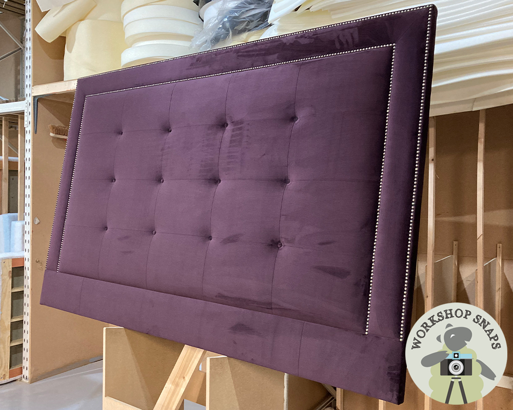 7ft Emperor Jura Headboard - Flat Velvet Aubergine - 45ins - Vintage Studs - Self Buttoned - With Pillowstop - 232924 (2)