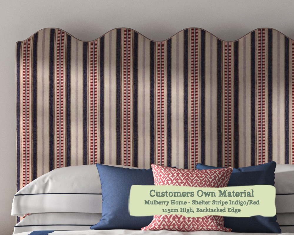 Emperor Solas Headboard in Mulberry Home Shelter Stripe Indigo Red Self Piped Edge 115cm High