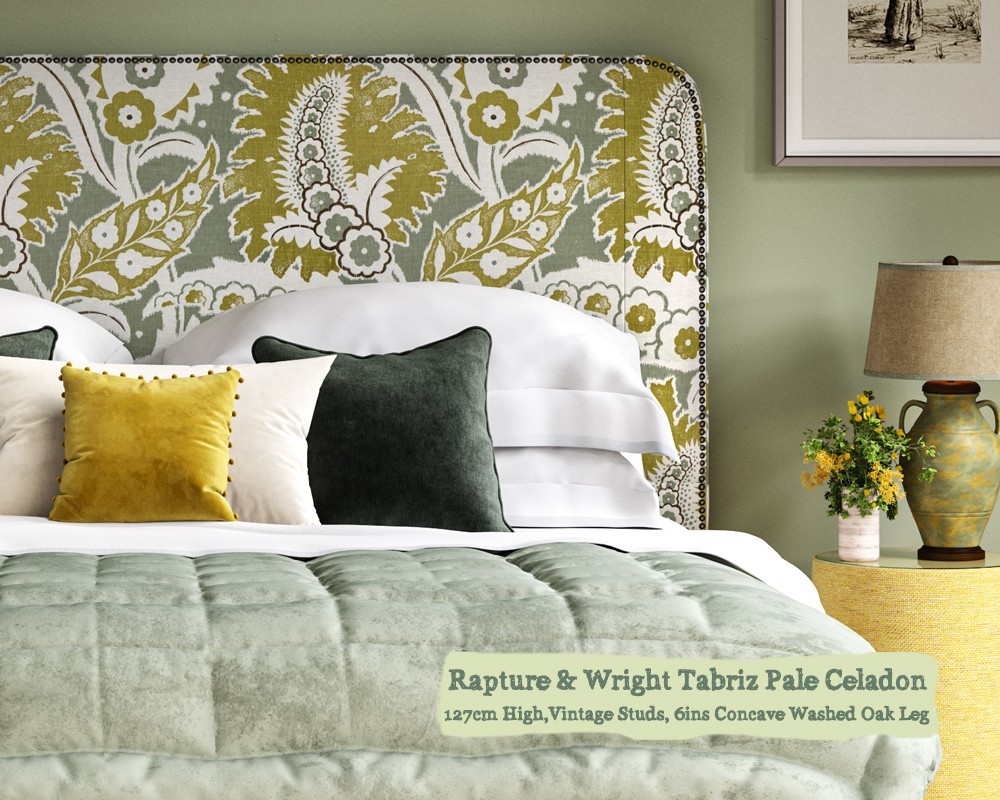 Single Faray Grand Bed in Rapture & Wright Tabriz Pale Celadon
