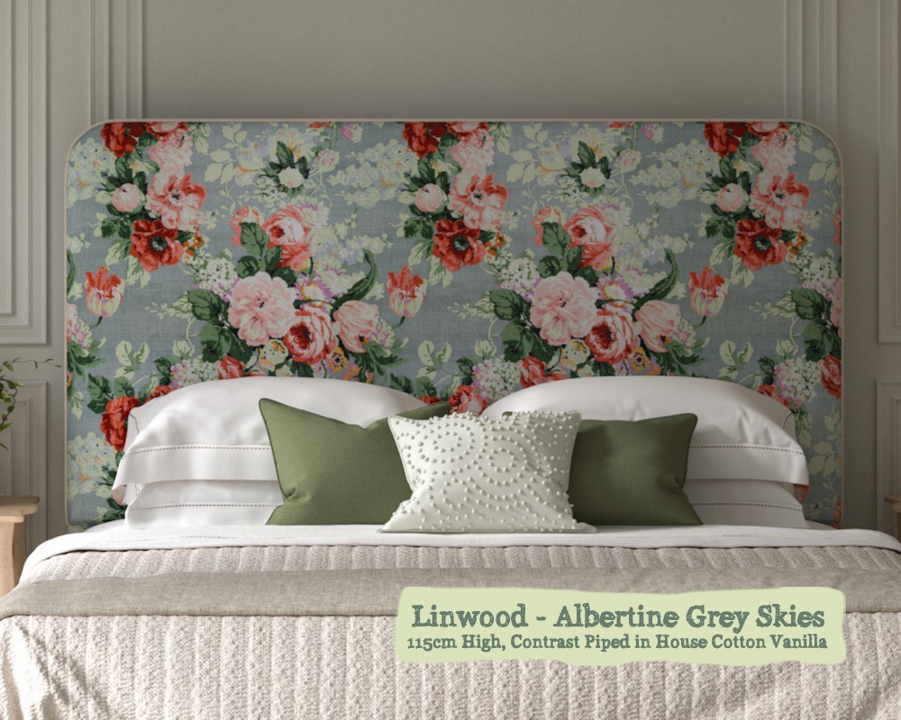Kingsize Faray Headboard in Linwood Albertine Grey Skies