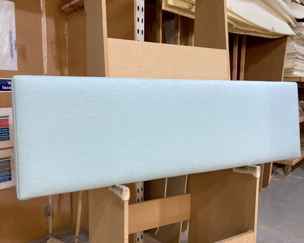This ex display Double Harris Headboard is expertly upholstered in House Cotton Sky self piped.