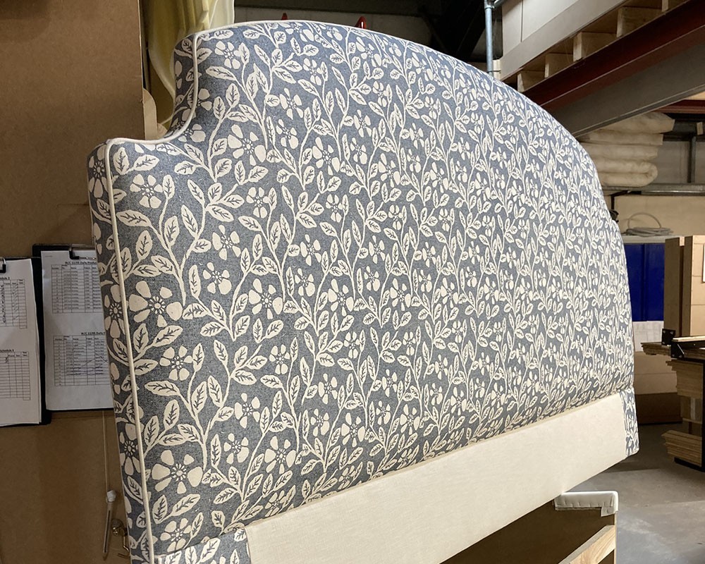 We are absolutely delighted with our headboard! The fabric is exactly right in our room and looks beautiful with the piping. The delivery process was seamless and my husband was able to install the headboard without any difficulties.