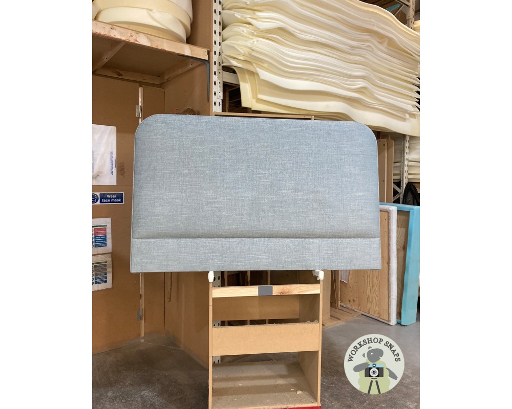 This ex display Kingsize Faray Headboard is expertly upholstered in House Weave Duck Egg, is self piped around the edge in the same fabric and includes a pillowstop.