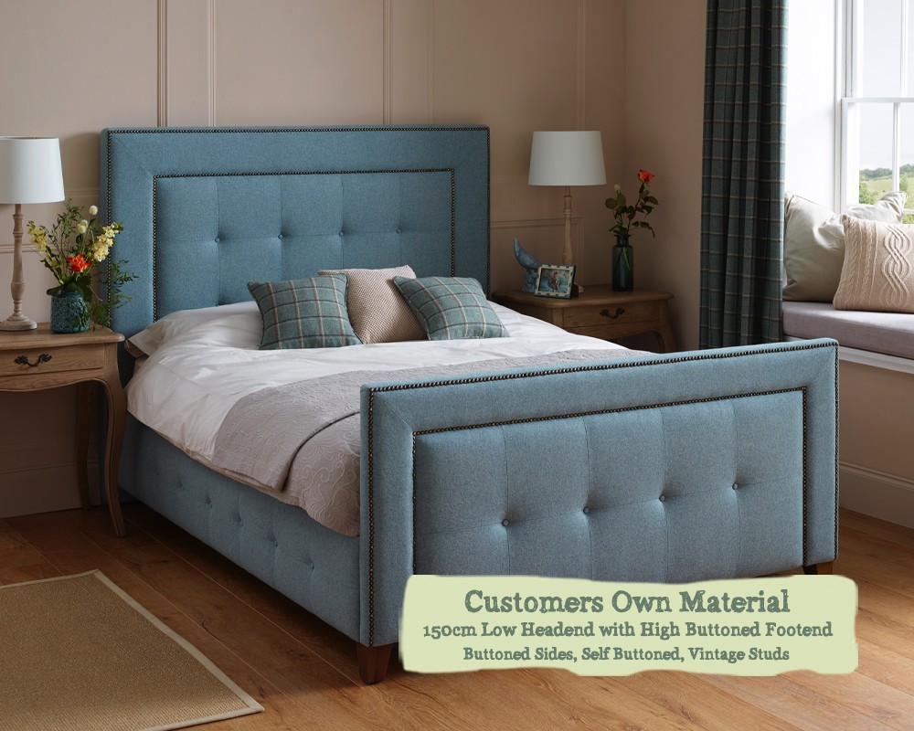 Kingsize Bed Jura Customers Own Material 150cm Low Headend High Buttoned Footend Self Buttoned Vintage Studs
